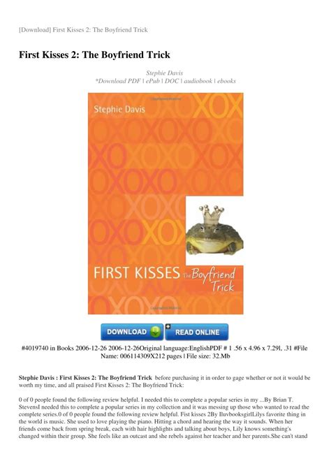 Buy a cheap copy of First Kisses 2: The Boyfriend Trick book by Stephie Davis. Naturally, I don't want to attend the semiformal with a pity date, which is why I told my friends I have a boyfriend: this really cute drummer, Rafe. (I wish!)... Free shipping over $10